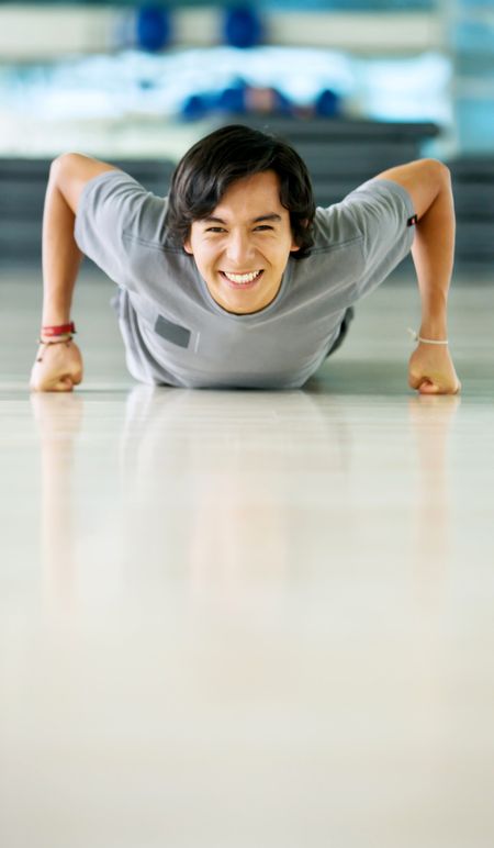 Man exercising at the gym doing push ups