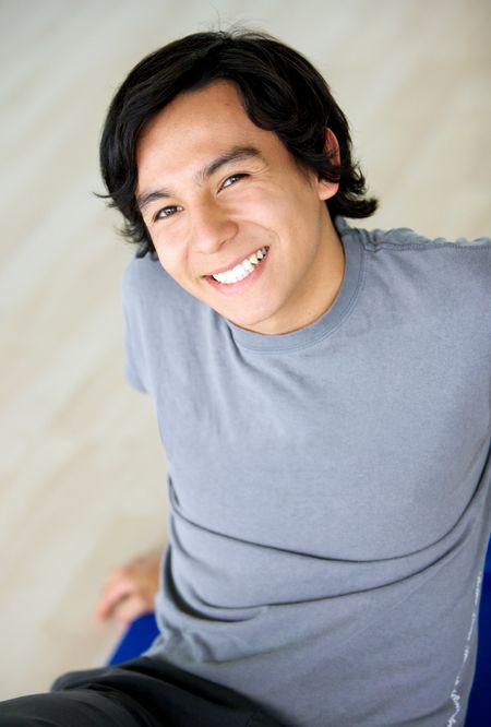 man at the gym portrait smiling and sitting on the floor