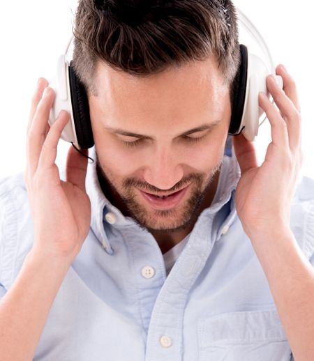 Man with headphones listening to music - isolated over white background