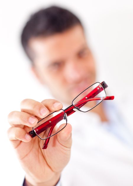 Man holding glasses - isolated over a white background