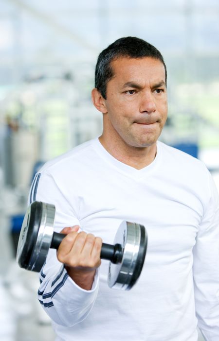 man lifting free weights at the gym