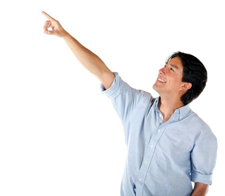 Man pointing at something isolated over a white background