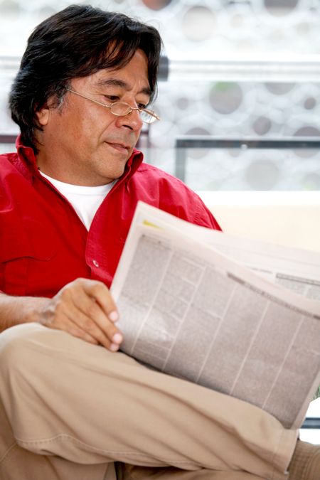 man reading the newspaper at his home