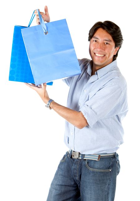 Man with shopping bags isolated over a white background