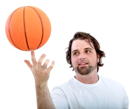 Man spinning a basketball isolated over a white background