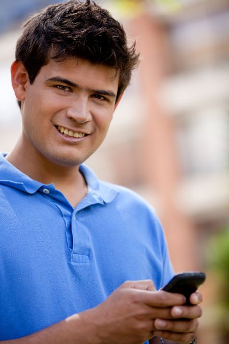 Man texting on his mobile phone outdoors