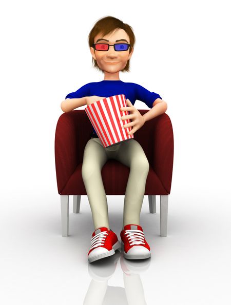 Man wearing 3D glasses watching a movie - isolated over a white background