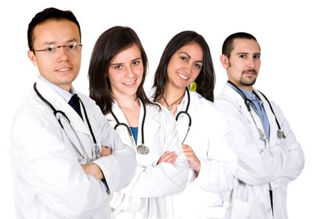 medical team with male and female doctors over a white background