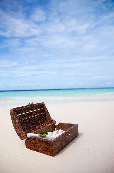 Message at the beach in a small chest