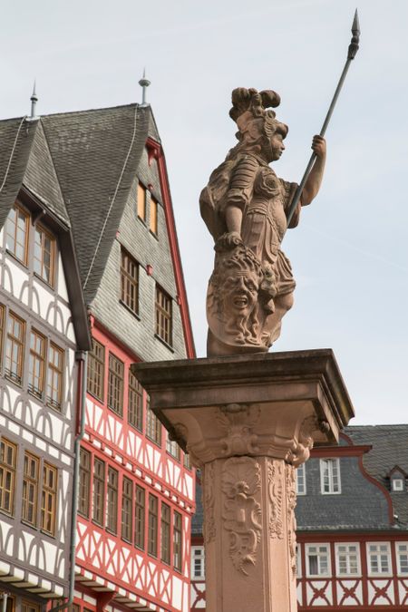 Minervabrunnen - Minerva Statue, Romerberg Square, Frankfurt; Germany