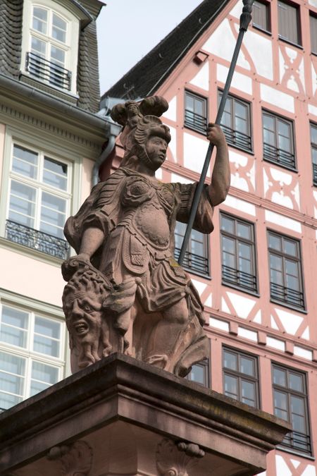 Minervabrunnen - Minerva Statue in Romerberg Square, Frankfurt; Germany