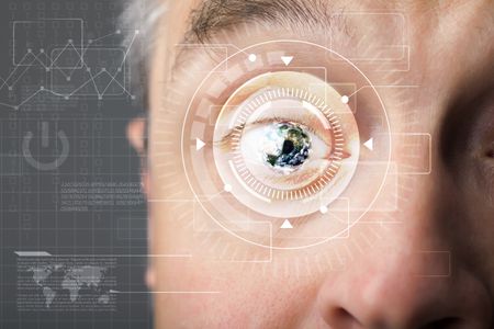 Modern cyber man with technolgy eye looking