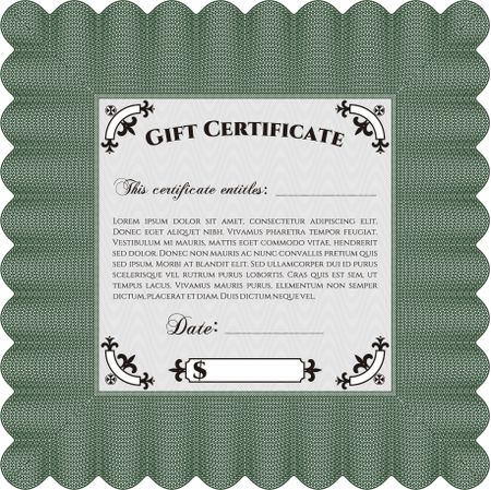Modern gift certificate. With great quality guilloche pattern. Retro design.