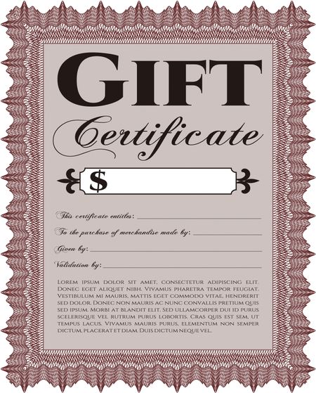 Modern gift certificate. With guilloche pattern and background. Cordial design. Vector illustration.