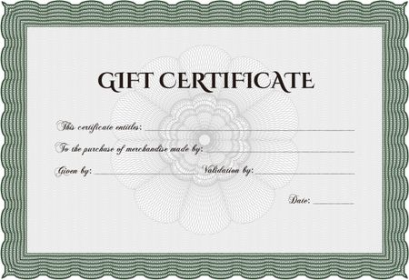 Modern gift certificate. Sophisticated design. With great quality guilloche pattern.