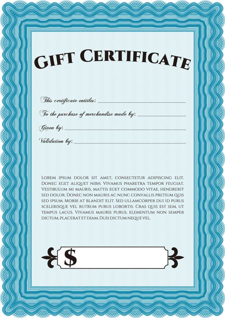 Modern gift certificate. Sophisticated design. With great quality guilloche pattern.