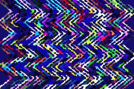 Multicolored abstract of jagged zigzags with many irregular dots on dark blue