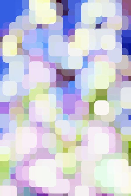 Multicolored abstract mosaic of pastel city lights, with rounded squares and rectangles overlapping for a three-dimensional effect of multiplicity