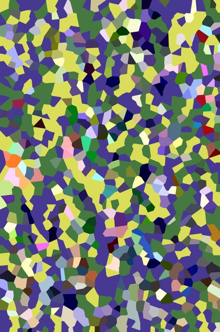 Multicolored crystallized mosaic abstract of irregular polygons, like pieces of a jigsaw puzzle or a section of stained glass, for decoration and background
