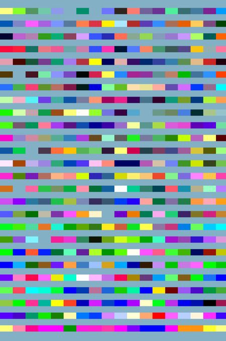 Multicolored geometric abstract mosaic of segmented parallel stripes on blue-green background