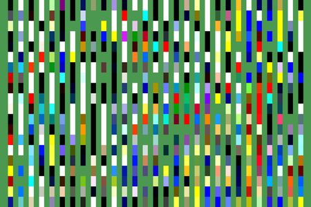 Multicolored geometric abstract of parallel solid bars of various heights on green