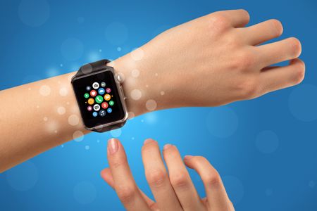 Naked female hand with smartwatch and with application icons on it