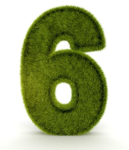 Number six in 3D and grass texture - isolated over white