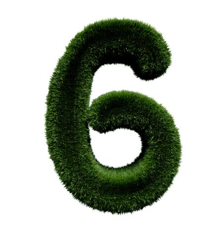 Number six in grass texture isolated over white
