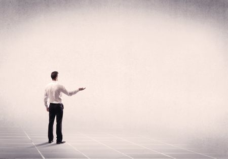 Office worker with briefcase standing with his back facing an empty space with filtered color concept