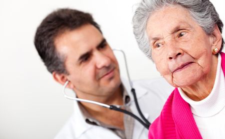 Old woman having a checkup at the doctor