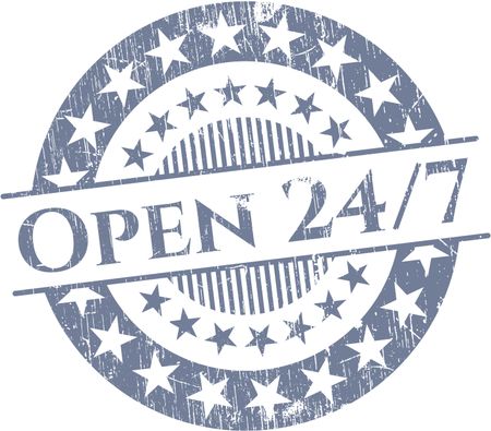 Open 24/7 rubber grunge texture stamp
