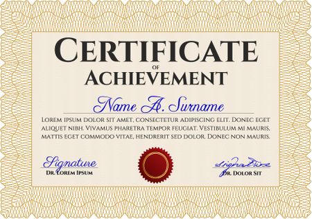 Orange Certificate. Detailed. Printer friendly. Complex design.