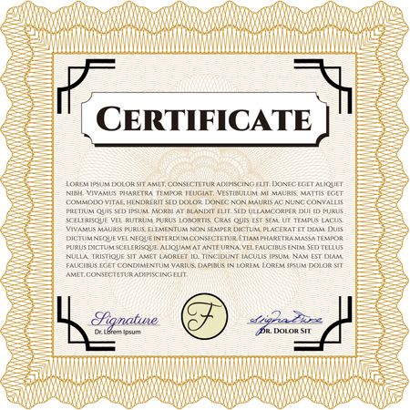 Orange Certificate template or diploma template. Beauty design. Vector pattern that is used in currency and diplomas.Complex background.