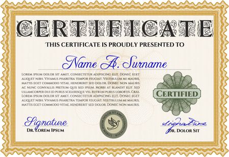 Orange Diploma template or certificate template. With quality background. Vector pattern that is used in money and certificate. Beauty design.