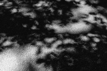 Palette of pavement for summer impressionism: Part of a dappled asphalt road through woods in northern Illinois, USA (black and white)
