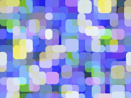 Parti-colored abstract of city lights, with rounded rectangles overlapping for illusion of three dimensions, like a dreamlike combination of window reflections and out-of-focus traffic lights