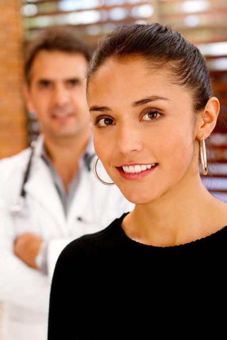 Patient at the hospital with a doctor on the background