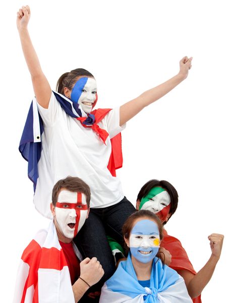 Patriotic people with flags painted on their faces - isolated over a white background