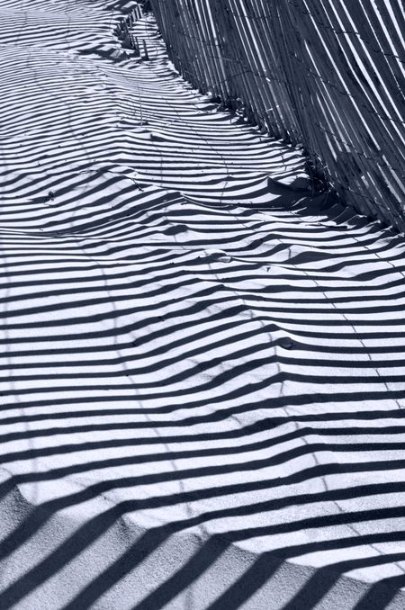 Pattern of shadows of beach fence on sand