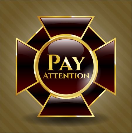 Pay Attention golden emblem or badge