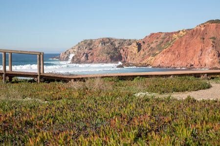 Pedestrian Walkway on Coastline at Amado Beach in Algarve; Portugal