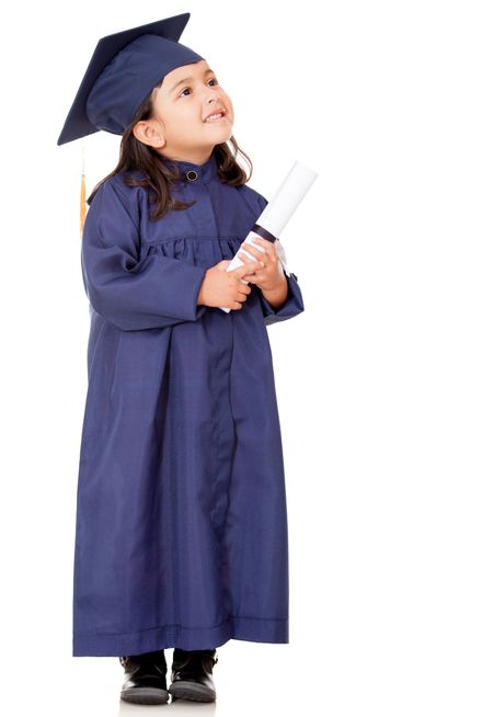 Pensive graduate girl - isolated over a white background
