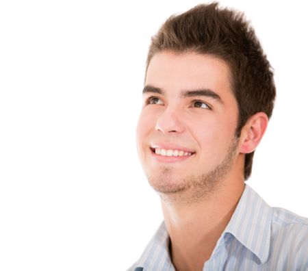 Pensive man portrait - isolated over a white background