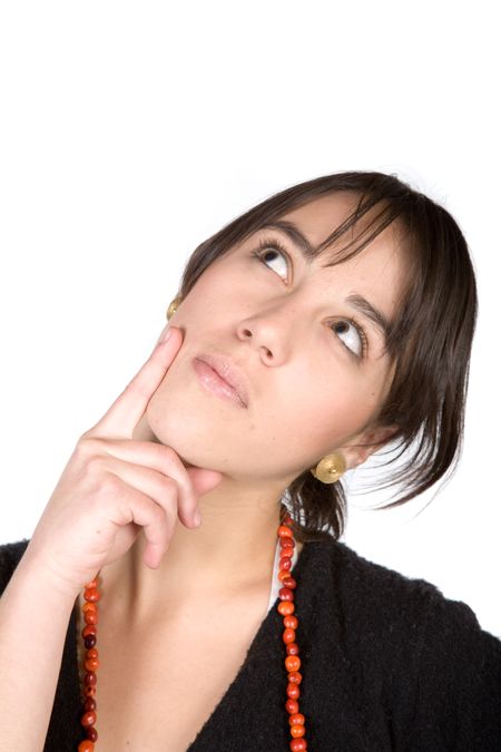 pensive young girl over a white background