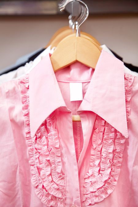 pink blouse hanging in a retail store