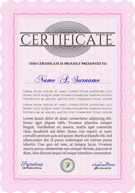 Pink Certificate. Detailed. Nice design. Printer friendly.