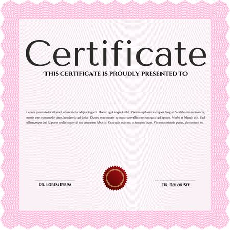 Pink Certificate. Detailed. Printer friendly. Complex design.