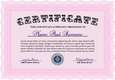 Pink certificate or diploma template