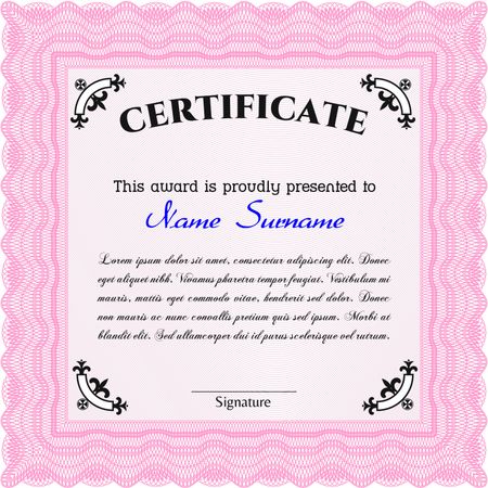 Pink Certificate or diploma template. Good design. Border, frame. With background.