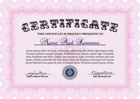 Pink Certificate template or diploma template. Vector pattern that is used in currency and diplomas.Complex background. Superior design.